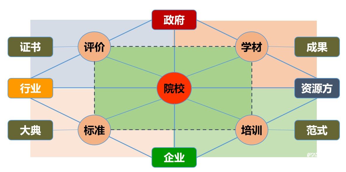 (2)組織執(zhí)行層面:行業(yè)、企業(yè)、院校、資源方參與的標準、評價、培訓(xùn)、學(xué)材等方面的貫通執(zhí)行工作。