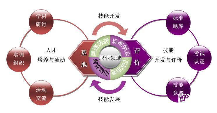 “標準制定、考官培訓(xùn)、競賽選拔、鑒定發(fā)證”體系。