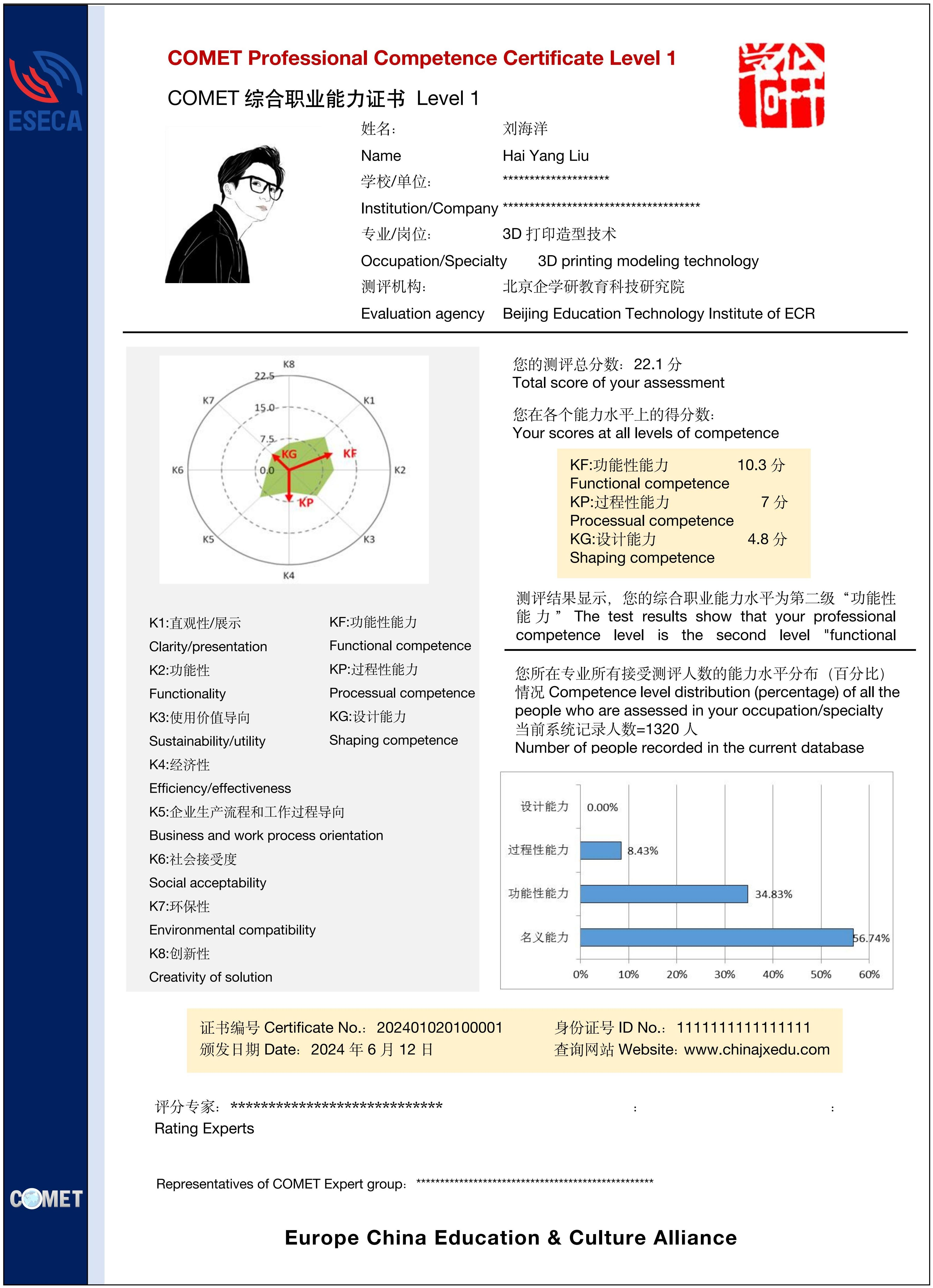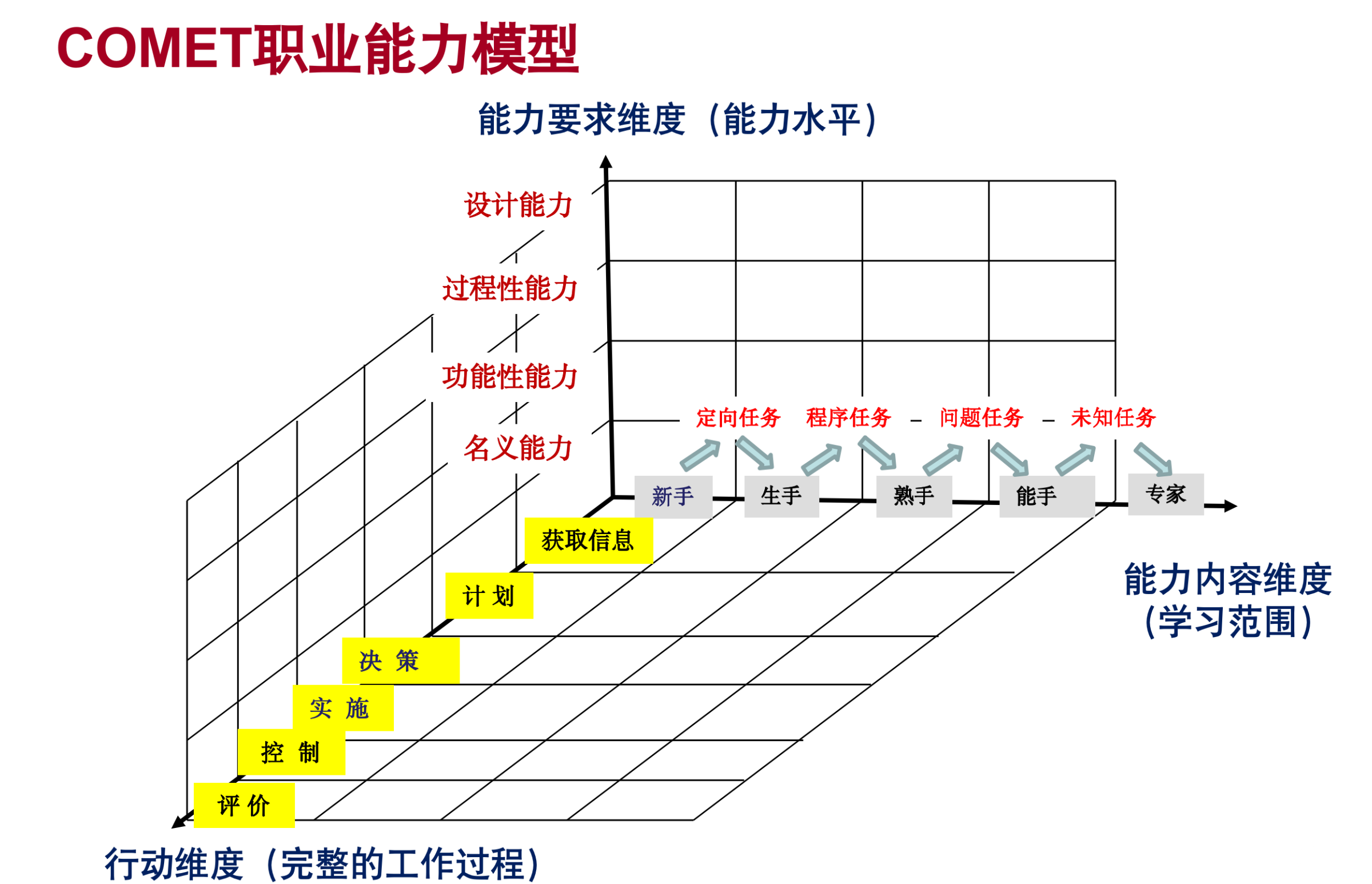 COMET 職業能力測評是一個起源于德國的職業教育國際研究項目,類似職業教育PISA(國際學生評價項目),目的是測量和評價接受測試者在特定職業領域內的認知能力特征。COMET職業能力測評的特點是:按照教育性目標和職業規范的雙重要求,采用開放式測評題目,并以相關背景數據為基礎分析接受測試者的職業認知特征。COMET測評方案采用大規模標準化心理診斷技術(large-scale diagnostics),以筆試形式進行。它追求的是“職業效度”,可以在有類似職業工作組織方式的國家進行,而與其具體的職業教育體制和課程無關。